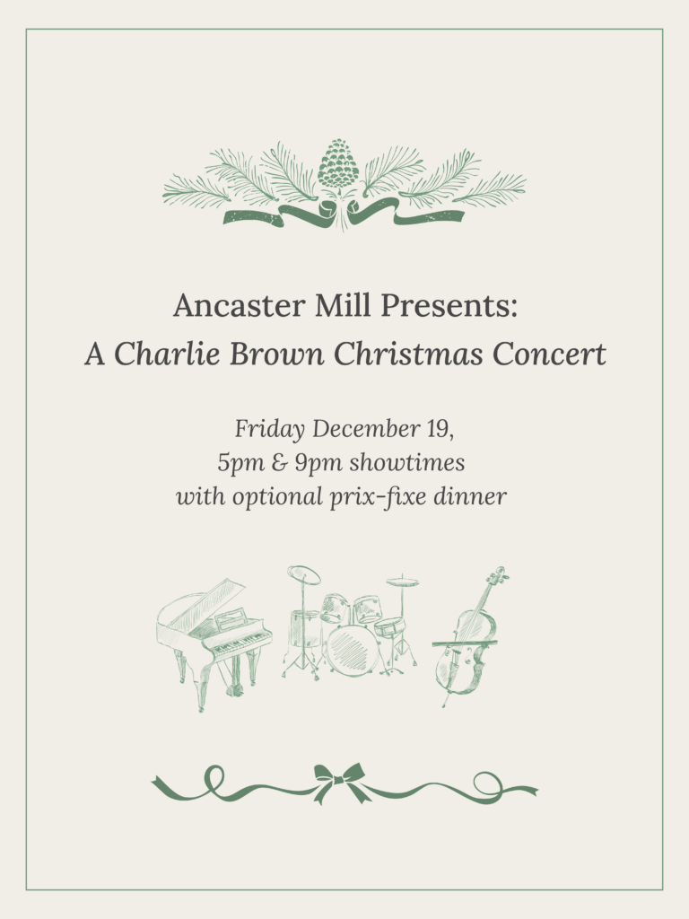 Celebrate the season with festive dining and memorable moments. From our Charlie Brown Concert and Christmas Eve Dinner to Boxing Day Brunch and New Year’s Eve, each gathering celebrates seasonal flavours and the cozy, welcoming spirit of the holidays at Ancaster Mill